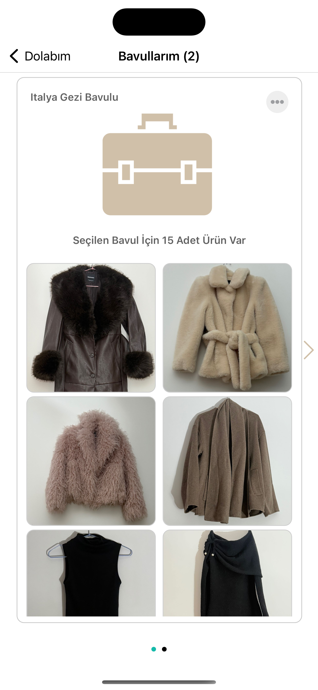 Tatil veya iş seyahatine mi çıkıyorsun? Dolabındaki kıyafetleri hızlıca seç, bavuluna en uygun kombinleri oluştur ve yanına neler alacağını planla. Ücretsiz olarak stilini organize et ve seyahate hazır ol.